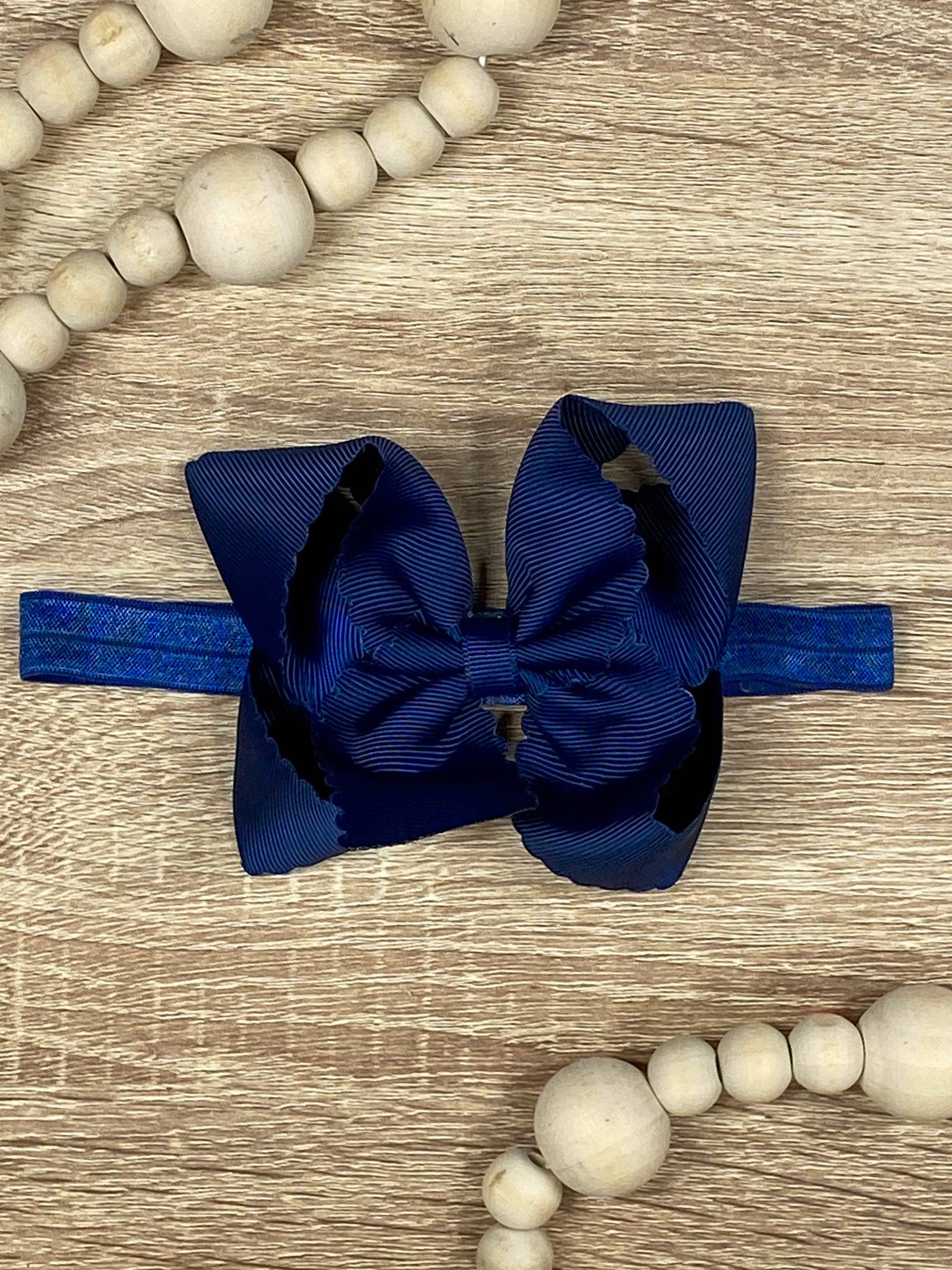 This headband is a real catch! With its scalloped design and classic size bow, it adds a playful touch to any outfit. Comfortable and stylish, it's a must-have accessory for any fashionista. Get ready to turn heads and receive compliments with this unique headband!