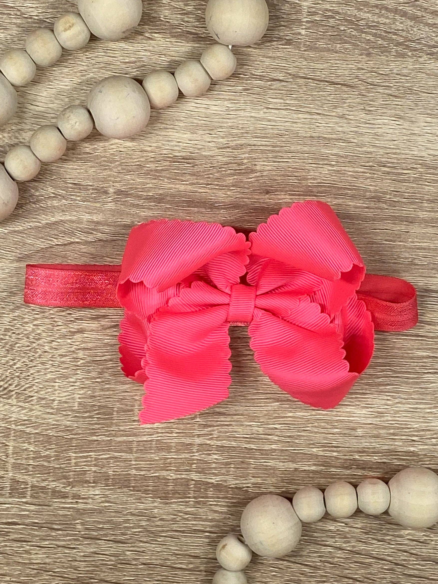 This headband is a real catch! With its scalloped design and classic size bow, it adds a playful touch to any outfit. Comfortable and stylish, it's a must-have accessory for any fashionista. Get ready to turn heads and receive compliments with this unique headband!