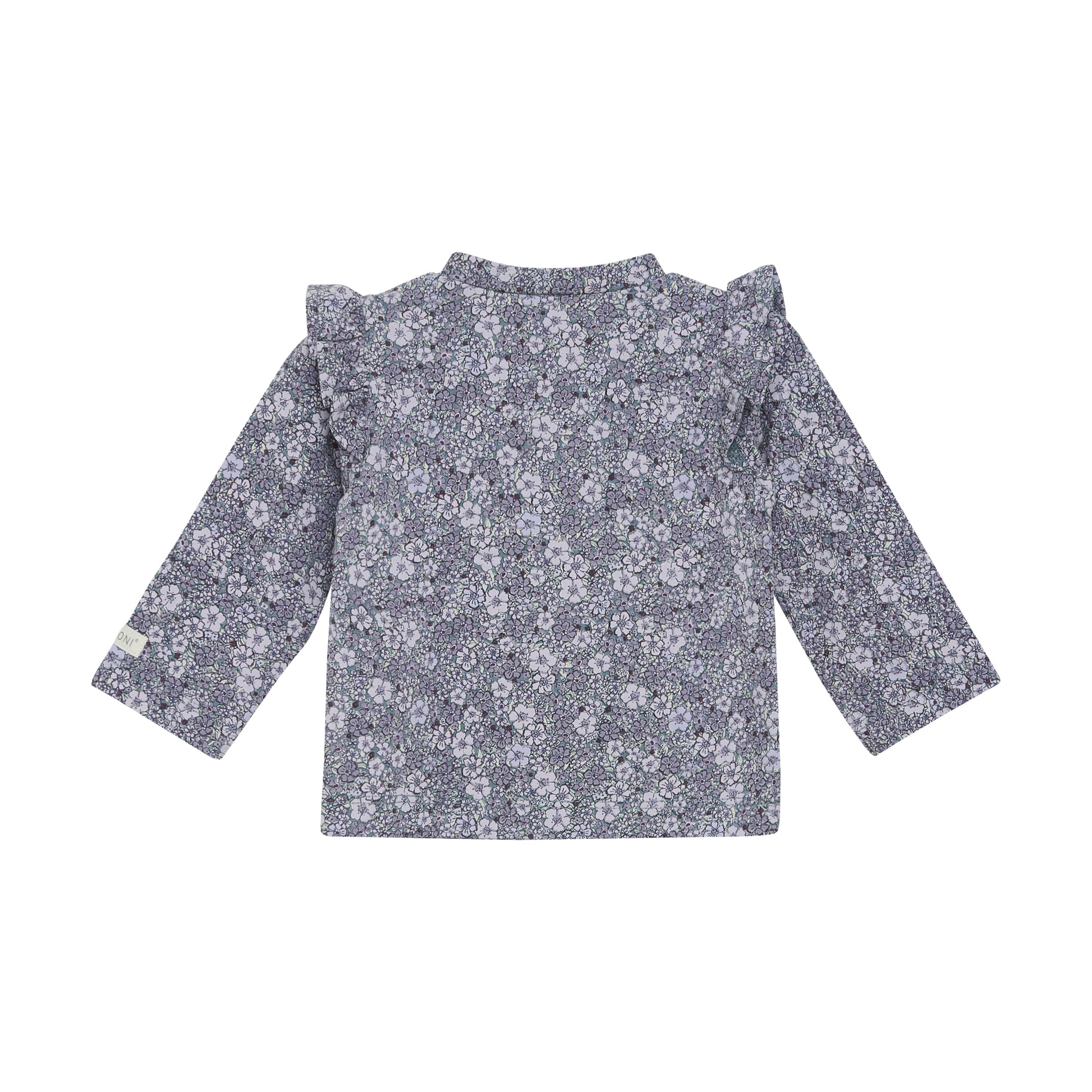 A floral favorite with a touch of charm. This FIXONI Long Sleeve Tee features an all-over ditsy floral print in soft lilac and deep navy tones, making it perfect for both everyday wear and special outings. Sweet ruffle details at the shoulders add a playful finish, while the soft organic cotton keeps it comfy against delicate skin. Pair it with leggings, jeans, or a cozy cardigan for an easy yet stylish outfit.