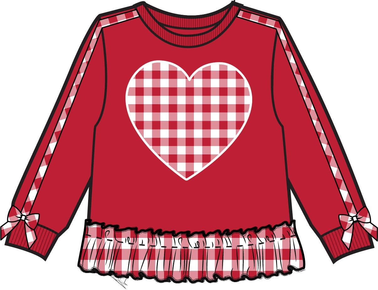 Girls Heart Red Gingham Applique Ruffle Bow Sweatshirt : Red