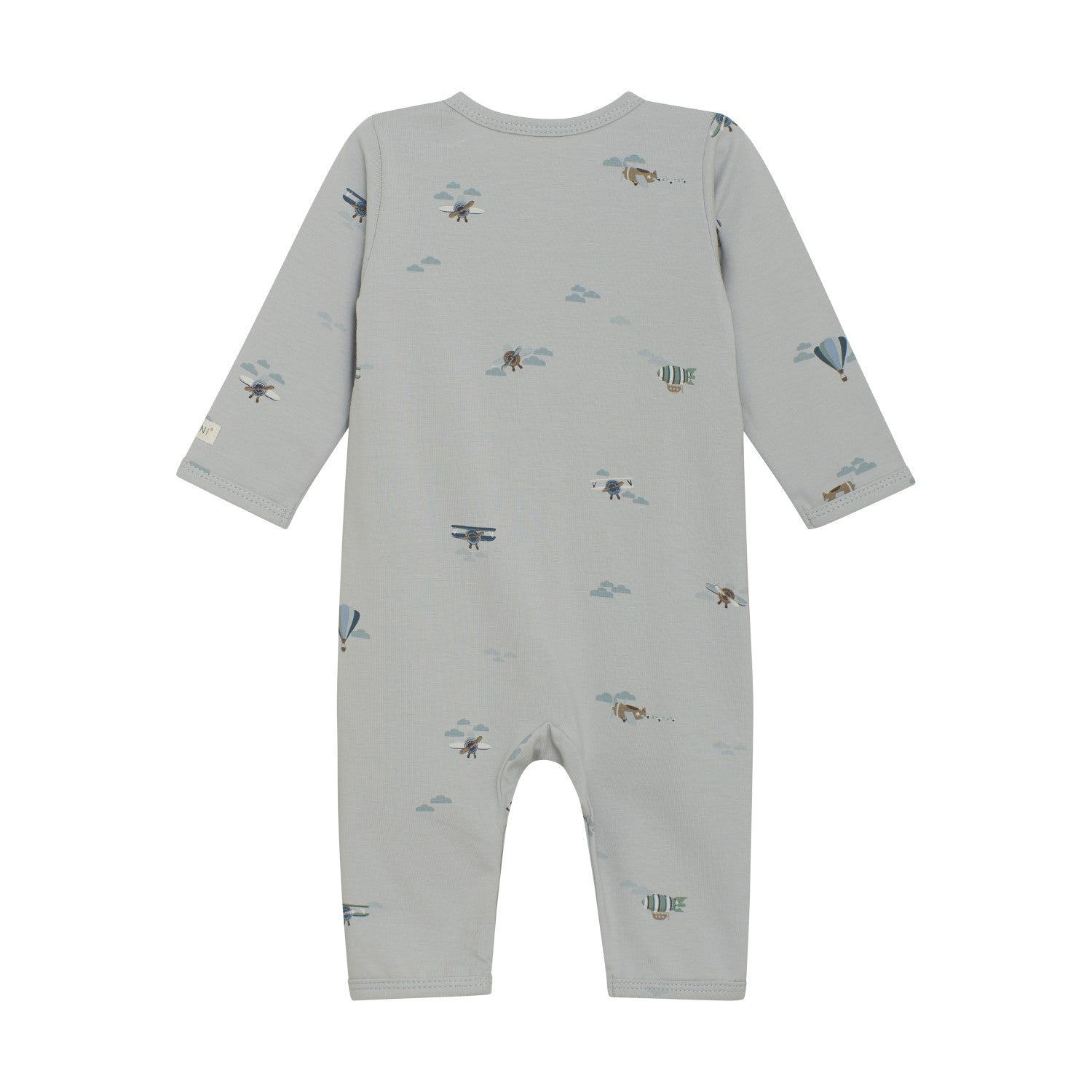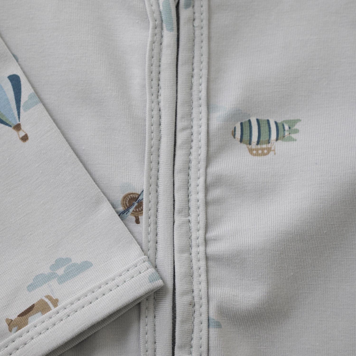 Designed for comfort and play, the FIXONI Sky Explorer Zip Romper is perfect for little adventurers. Featuring a charming all-over aeroplane, balloon, and cloud print on a soft sky-blue background, this footless romper combines style with everyday practicality.