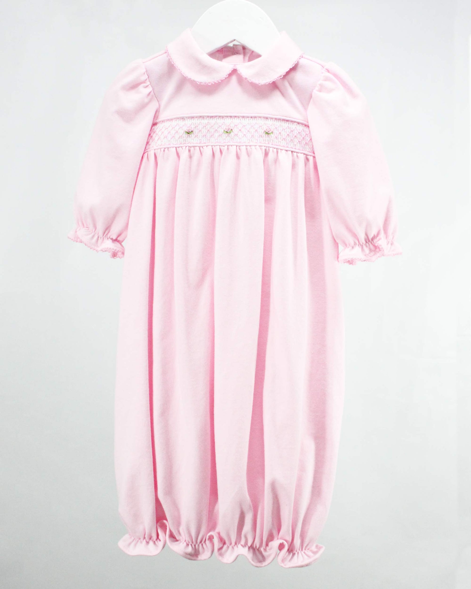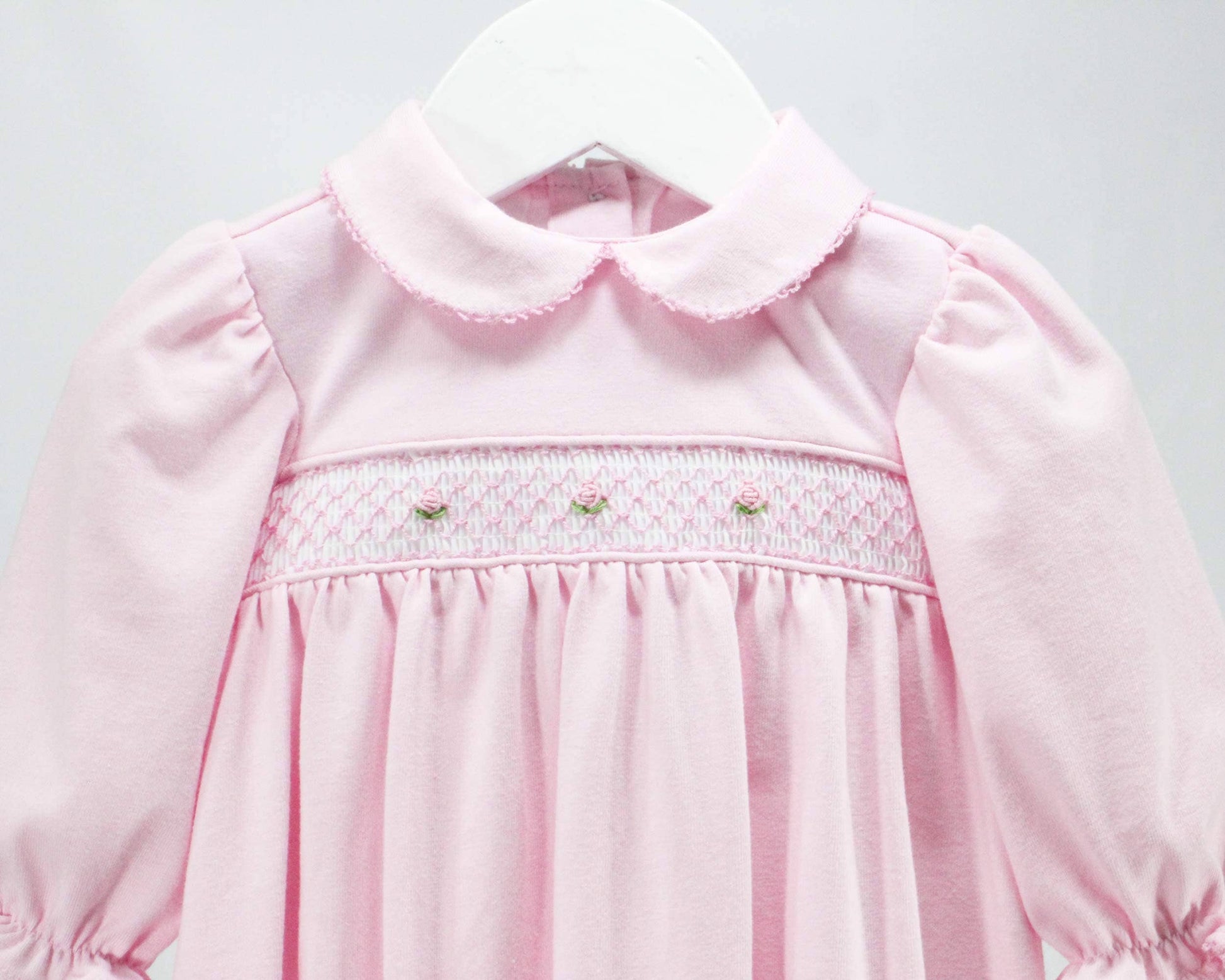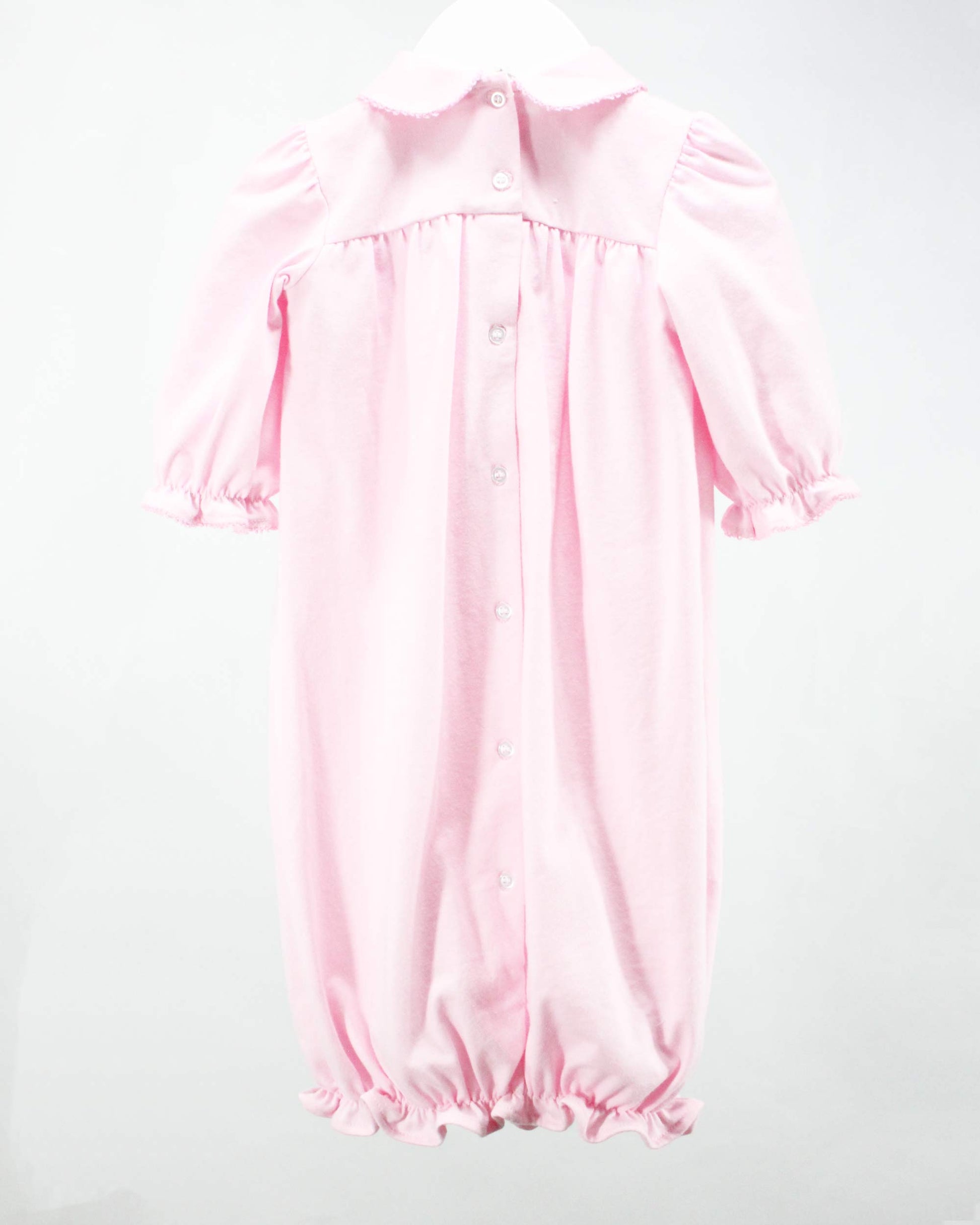 From Baby Blessings Clothing, we present the Pink and White Geometric Claire Gown. This baby gown is a testament to our passion for creating high-quality garments that evoke timeless classics. The elegant southern style inspired design, combined with a sweet and standout color combination, brings magic into every stitch. Dress your child beautifully in our charming and quality garment.